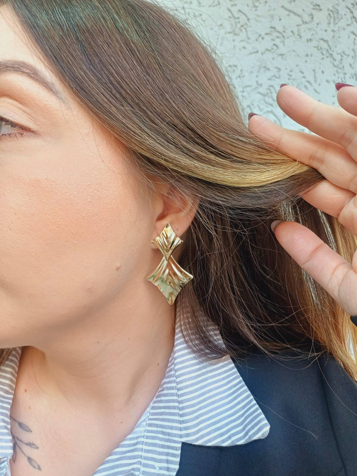 Brinco Leve Longo Geométrio Banho de Ouro 18K