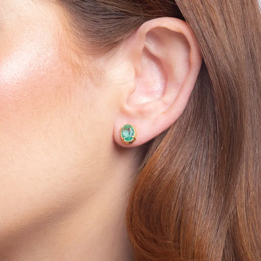 Brinco Pedra Oval Turmalina Banho de Ouro 18K