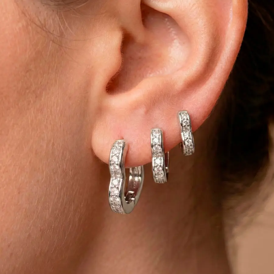 Característica: Brinco trio de argolas em formato de coração com micro zircônias cristais cravejadas, tamanhos P, M e G, banhado a ródio.