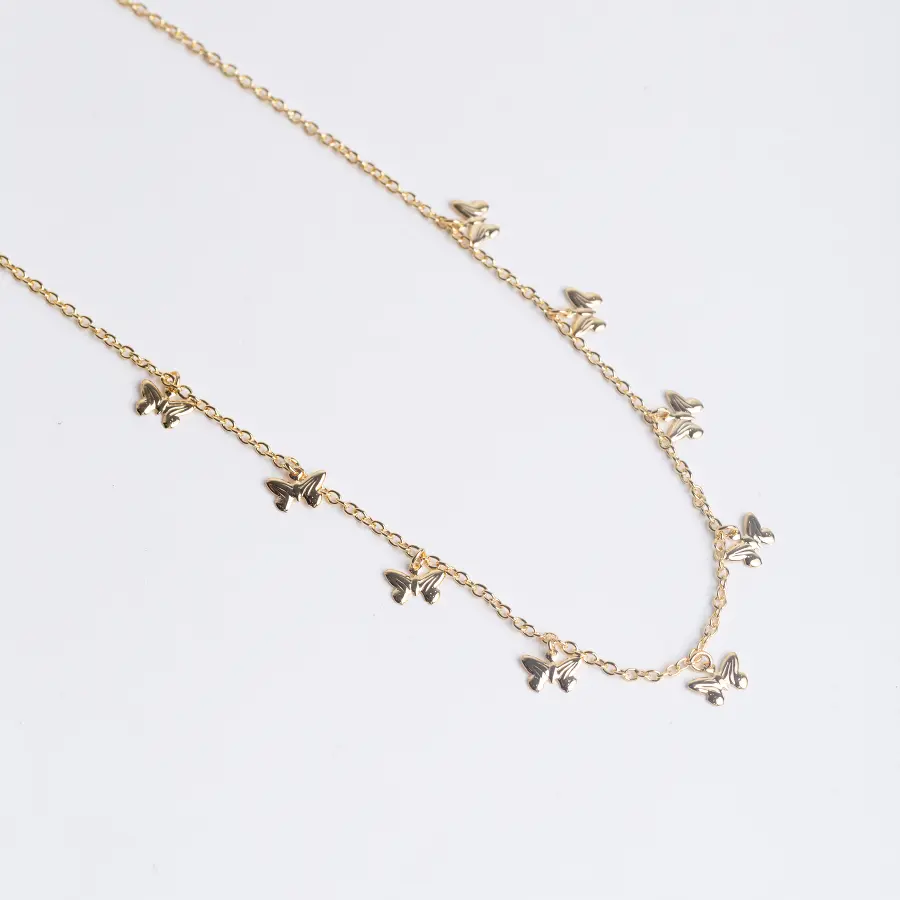 Nada molda melhor o rosto feminino do que um colar com caimento perfeito. O Colar Borboletas Kirvah une a força doBanho de Ouro 18K com a nobreza do pingente no formato borboleta, criando uma moldura de sofisticação para qualquer decote. Seja por cima de uma camisa branca ou com um vestido de festa, ele é a peça-chave para quem deseja uma presença marcante, porém discreta.
