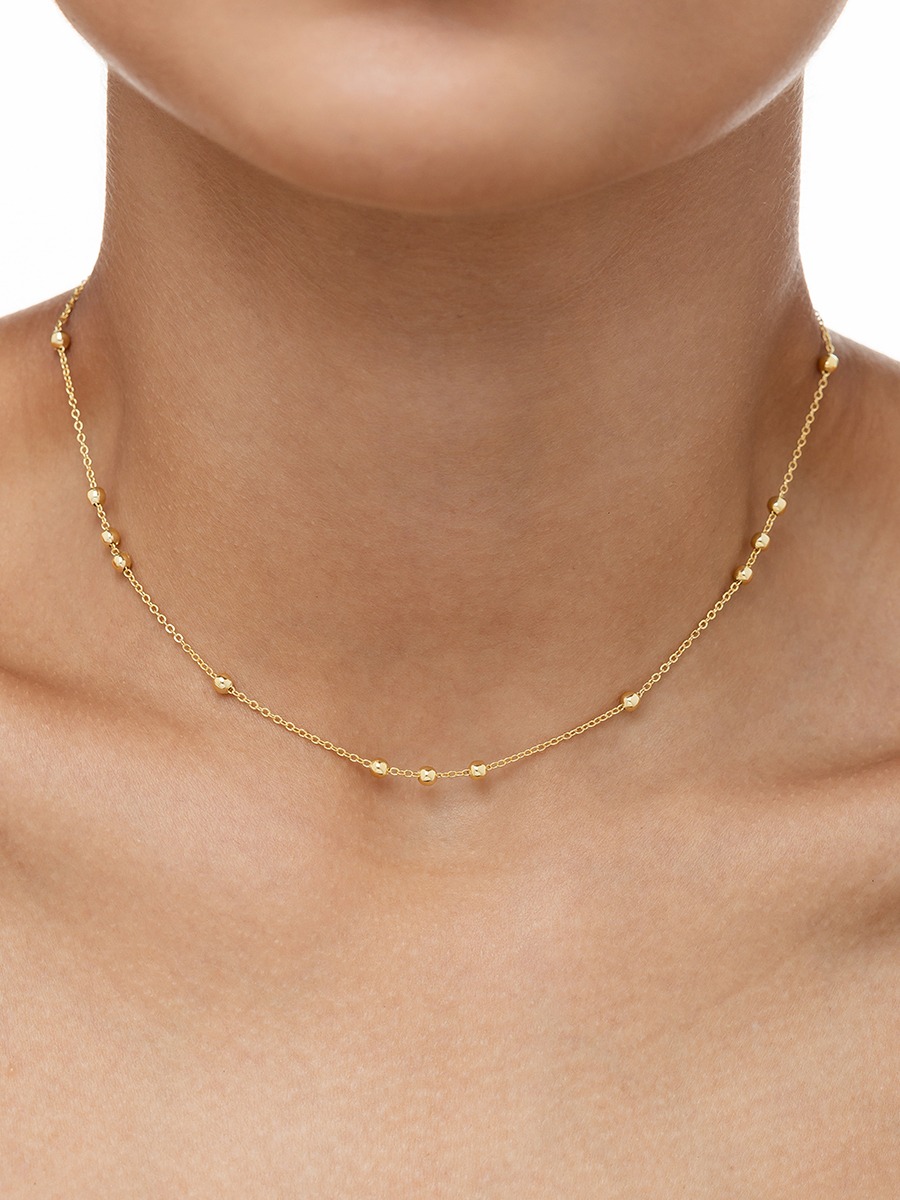 Todo o estilo contemporâneo da Kirvah Semijoias está presente nesta linda Corrente Choker Bolinhas Douradas. Banhado a ouro 18K, a peça possuiu um acabamento de extrema qualidade com detalhes que reúnem elegância, beleza e design exclusivo para dar um toque especial ao look.