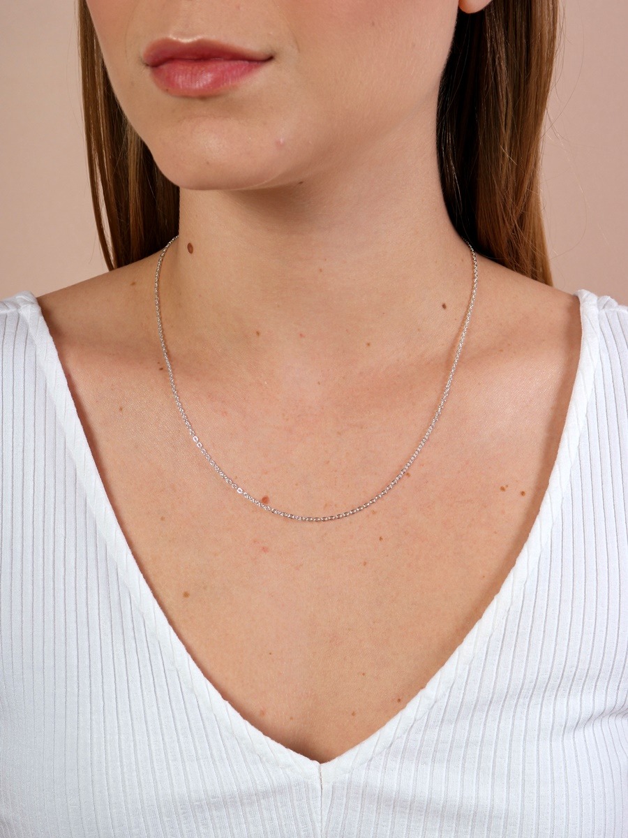 Todo o estilo feminino e contemporâneo da Kirvah Semijoias está presente neste lindo Colar Corrente Mini Elos com 40 cm de comprimento. Banhada a Prata, a peça possuiu um acabamento de extrema qualidade, com detalhes que reúnem elegância, beleza e design exclusivo para dar um toque especial ao look. A escolha perfeita para mulheres sofisticadas, que gostam de ter um acessório delicado para ser utilizado em qualquer ocasião.
